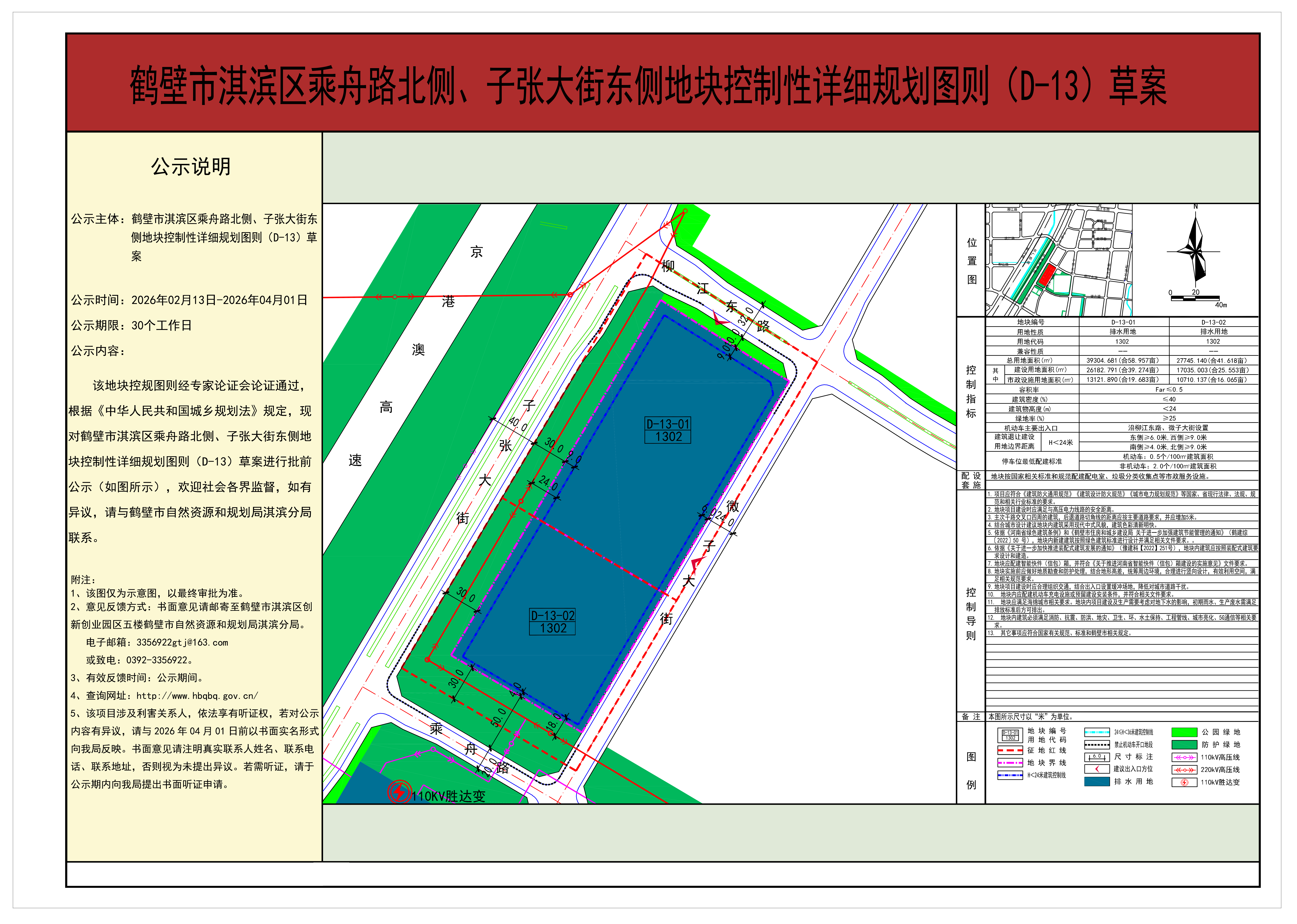 鹤壁市淇滨区乘舟路北侧、子张大街东侧地块控制性详细规划图则(D-13)草案
